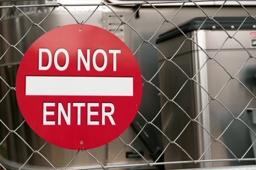 看板や表示板をフェンスや棒にインシュロックや針金で吊り下げたり、